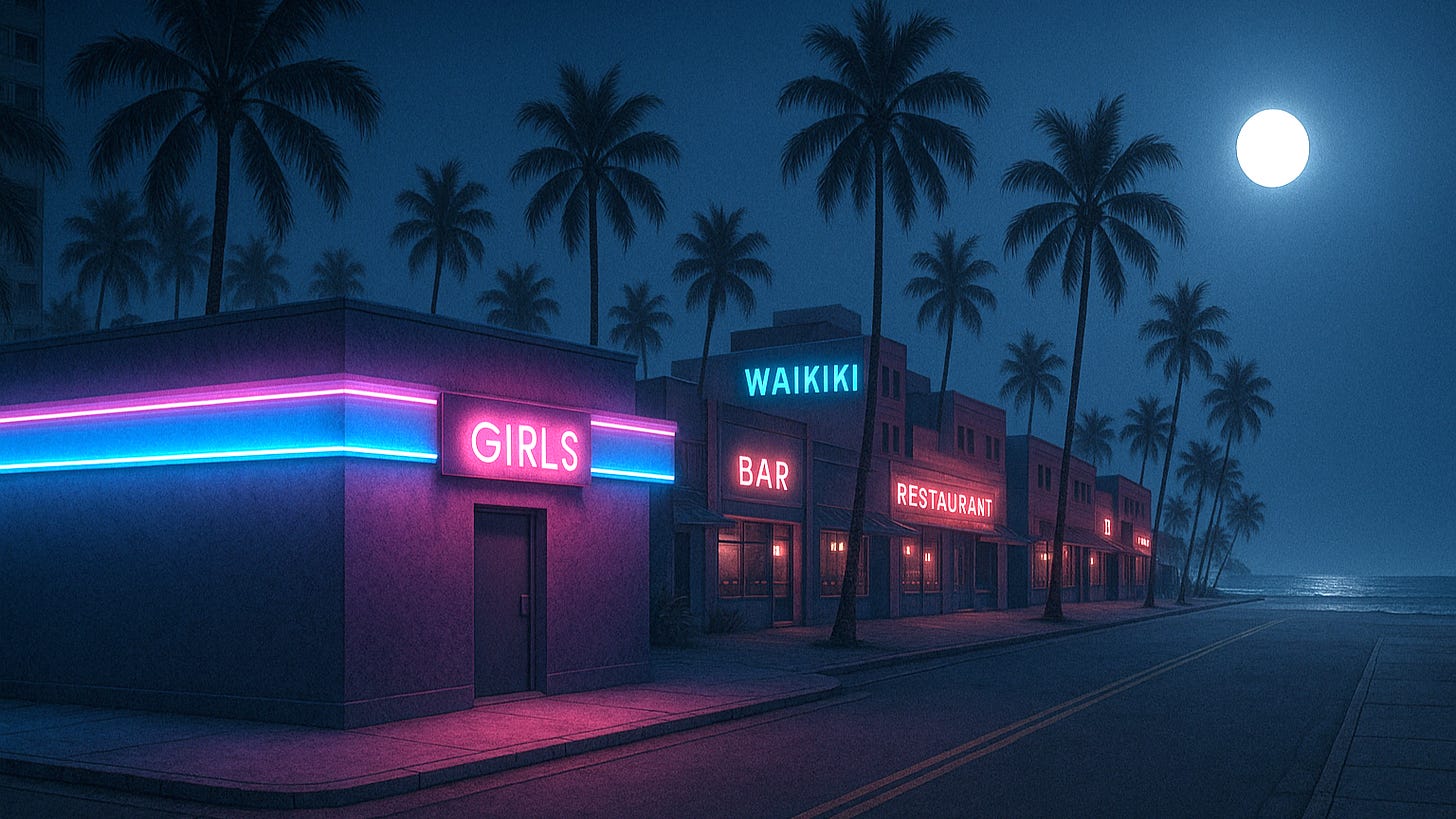 I vaguely remembered my chief had taken me to a strip club in Waikiki, on my first deployment back in 2001, and I told Frank we should go there. At least then, we could see some naked ladies before heading back to the hotel for the night.